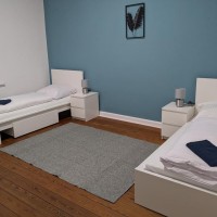 Aufgeteilt ist die Wohnung in 3 geräumige Doppelzimmer. Jedes Zimmer verfügt über Einzelbetten, Kommoden, Schränke und Nachttische. Verdunklungsvorhänge und Rollos sorgen für einen guten Schlaf. Bettwäsche und Duschhandtuch sind für jeden Gast inklusive.