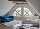 Der Blick aus dem Rundfenster der oberen Etage ist idyllisch.
