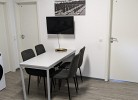 Die offene Küche mit Essbereich und Smart TV dient als Aufenthaltsbereich außerhalb der Schlafzimmer.